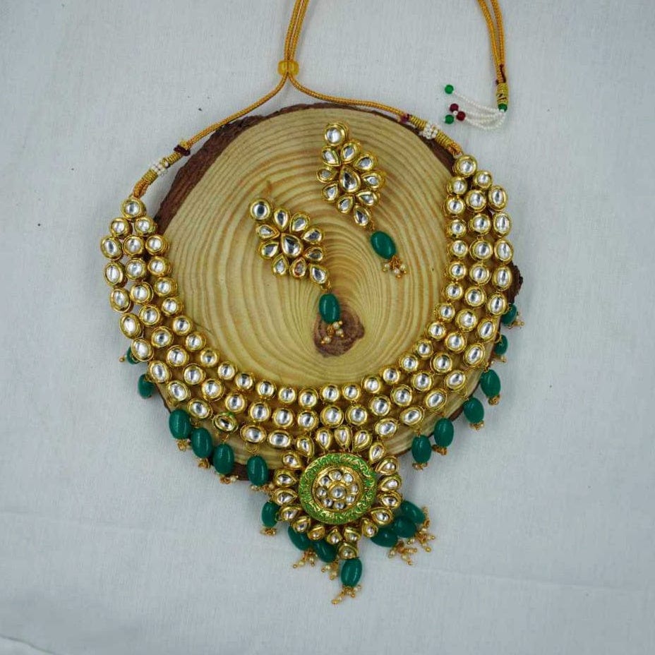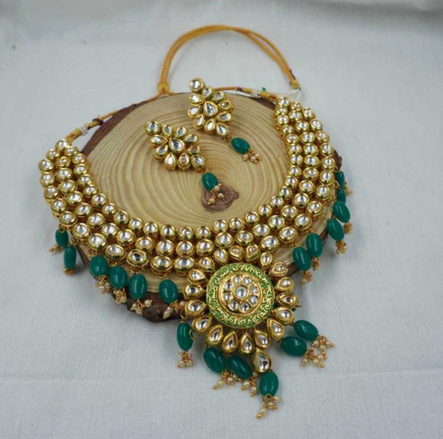 Green Heavy Kundan Semi Bridal Set | Traditional Indian Jewelry