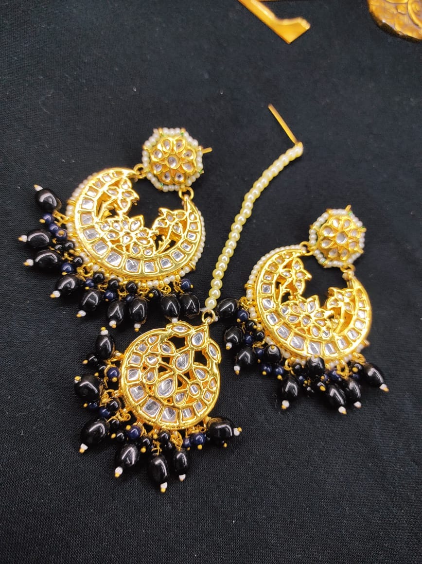 This Earring Set From Zevar Is Made From Quality Kundan. Micron Gold Polish Chand Bali Chandelier With designer Top, Stringed With Chand Bali Polki & Green Semi Precious Drops Red classic drop earrings, gold-plated, has Kundan Secured with an insert by Zevar
