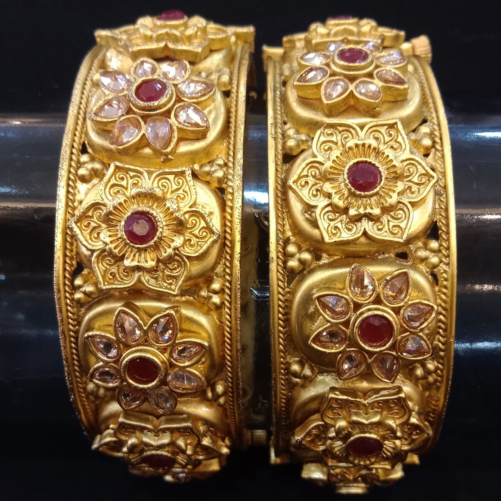 Floral Design Gold Plated Bangles