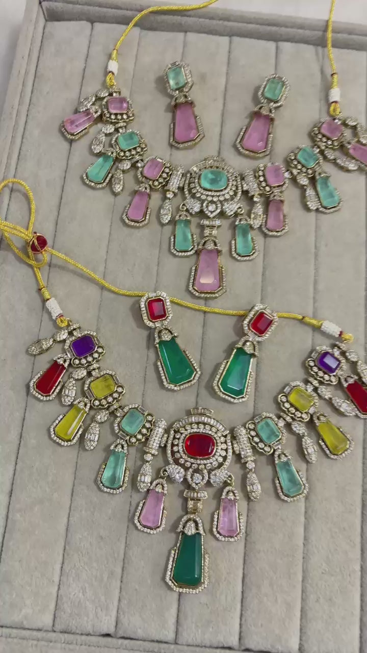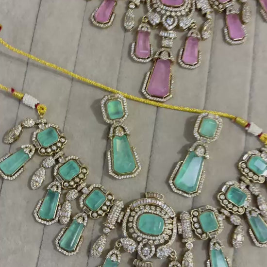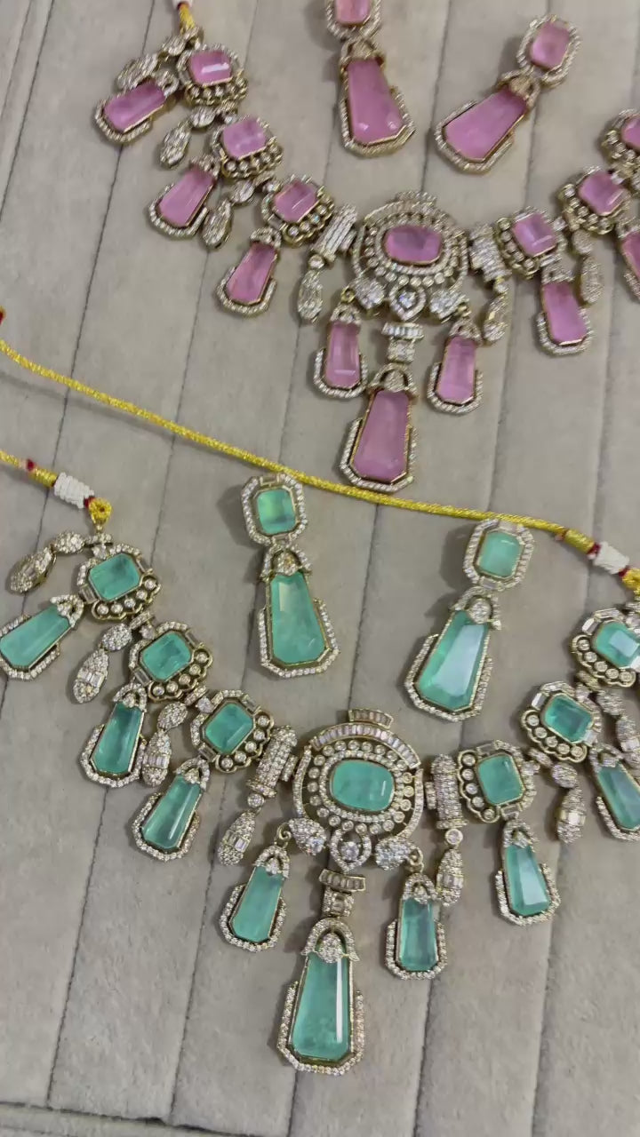 Luxury Pastel Kundan Pulki Stone Necklace Set
